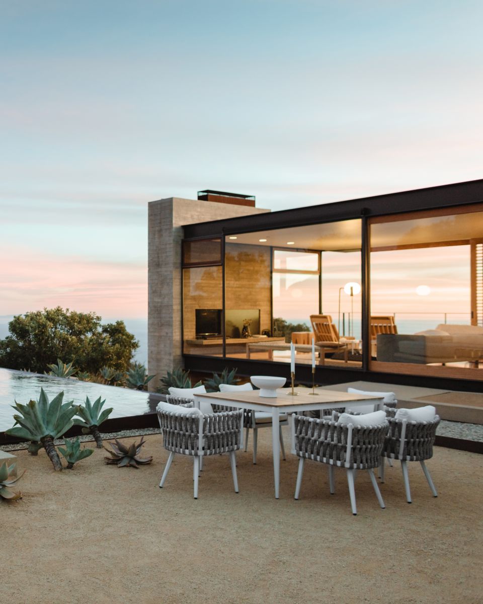 Go for a minimal, Scandinavian-inspired round dining table like the Winston Outdoor Dining Table and pair it with a sleek dining chair with clean lines like the Parson Outdoor Dining Chair, a great option for smaller outdoor dining areas.