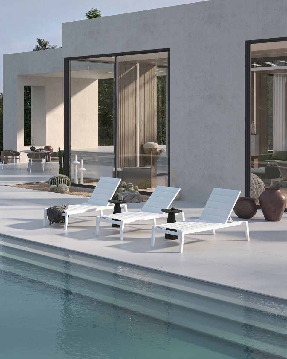 -‍ A poolside area was made more inviting and comfortable with a couple of foldable lounge chairs and a few side tables.