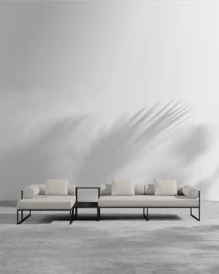 - Includes 1 chaise with armrest & 1 armless sofa with walnut storage table