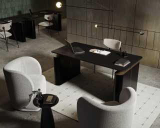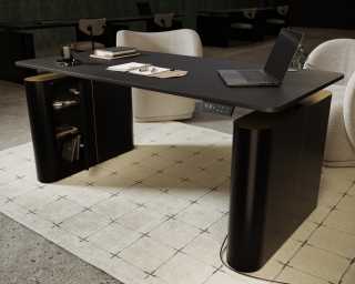 Elevating any office space with its brass detailing and smooth curves, the luxurious Eryk Standing Desk - Base adds a sense of luxury to any standing desk top. This premium black lacquer and antique brushed brass base can be paired with your own standing desk or combined with our matching standing electric desk component here.