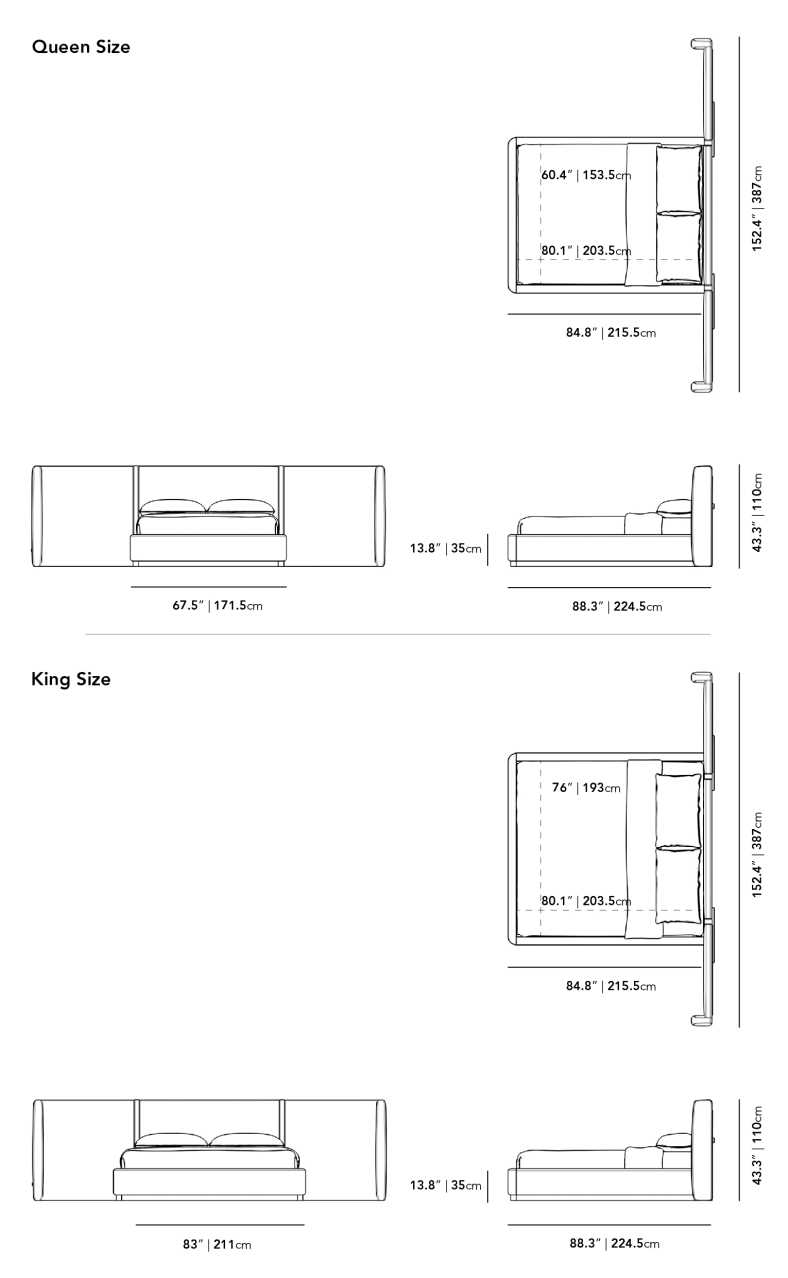 - The elongated upholstered headboard with added grey oak veneer accent makes a striking statement.