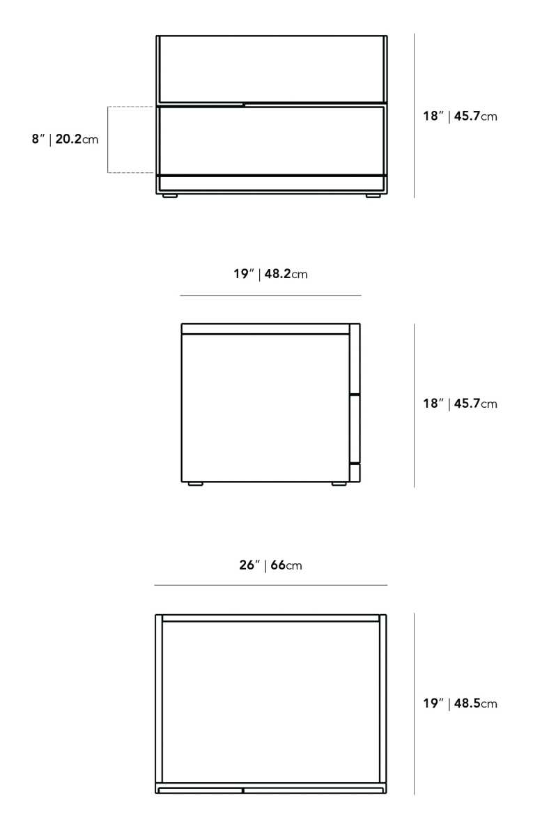Hunter's handsome silhouette and dreamy walnut or ash veneer are reminiscent of a modern cabin. This five piece bedroom set is designed with a wide and low profile to add casual comfort to a good night. The Hunter Nightstand is a perfect pair with the Hunter Bed, and is available in American walnut, ash veneer, or high gloss white lacquer for an unexpectedly cool contrast. The top is finished with a reflective mirror surface for a flash of modernism.