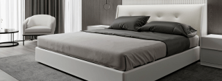 The Emery Bed is a modern approach to the traditional upholstered bed. Contemporary upgrades such as the low-profile silhouette and vegan leather headboard gently wrap around the bed frame for a simple yet polished look.