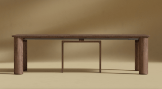 Immerse in the captivating allure of the Maia Extendable Dining Table, adorned with sculptural pillar-like legs and a sleek top featuring rounded corners. The Maia effortlessly commands attention in any dining space.