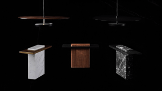 - Available in walnut veneer or matte black finish